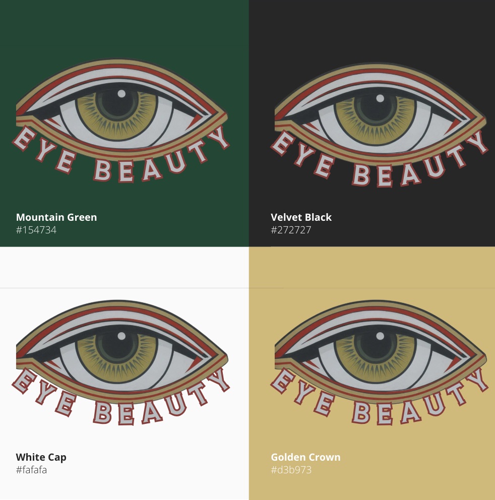 The Eye Beauty logo was carefully designed to align with the brand’s mission and is showcased across various applications. From creative makeup looks to minimalistic packaging, the logo adapts seamlessly, adding an elegant and bold identity to each product. As shown in the provided collage, the logo blends harmoniously with its environment while maintaining its distinctive features. This thoughtful placement highlights the brand’s ability to balance artistry and functionality, ensuring its design remains impactful in all contexts.